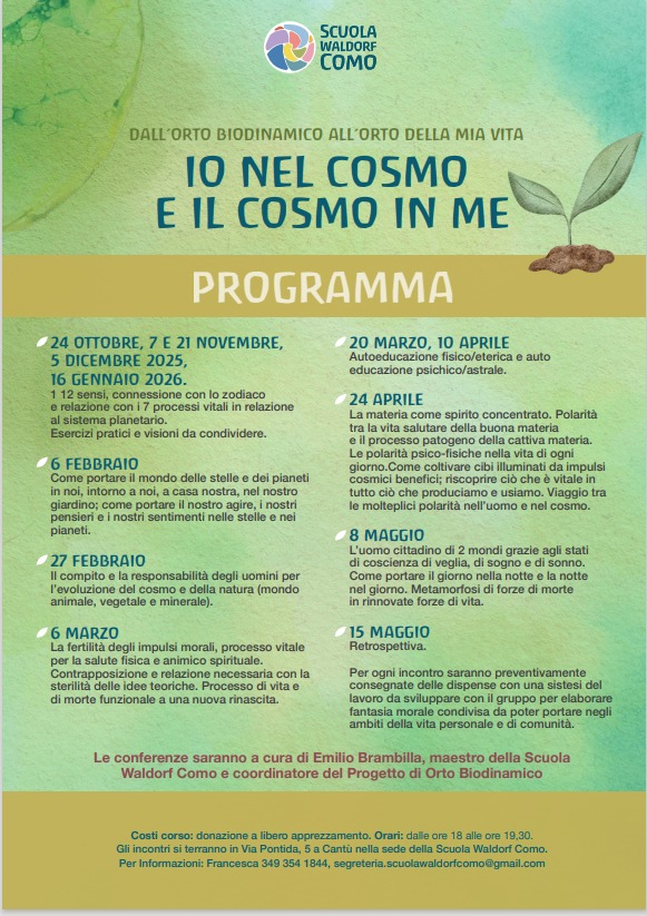 Per ulteriori informazioni: Francesca 349 3541844 o segreteria@scuolawaldorfcomo.it oppure il maestro Emilio 333 6956654